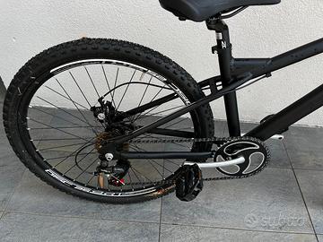 Bicicletta da dirt jump con ruote da 26 pollici e marce a 6 velocita' . Telaio rinforzato. La bicicletta e' stata costruita da un appassionato ed era per mio figlio che ha pensato di crescere di 15 cm in 8 mesi , quindi ho dovuto cambiarla. Bici nuova .