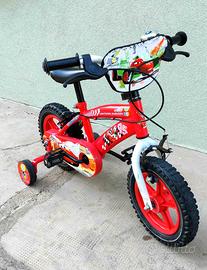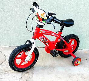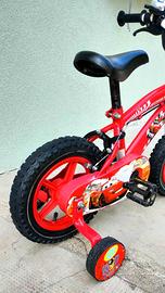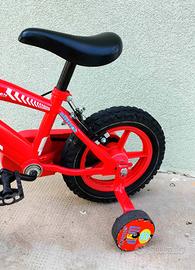Bicicletta Disney Cars Saetta Mc Queen con ruote da 12,5 pollici è ideale dai 3 ai 5 anni per un peso massimo 40 kg. La bici ha la ruota libera ed è dotata di freno anteriore e posteriore, il sedile e il manubrio sono regolabili e le ruote stabilizzatrici sono rimovibili. Ottima flessibilità per crescere con il tuo bambino
