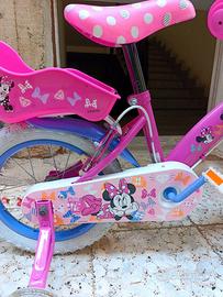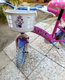 Bicicletta bambina Disney Minnie 12". Con sella e manubrio regolabili. Per bambine di età compresa tra 3 e 6 anni. Completa di cestino davanti e portabambole dietro. Usata poco e in ottime condizioni, sembra nuova...
