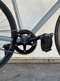 Telaio leggero, geometria pista, perfetta per criterium e per l’uso urbano veloce.