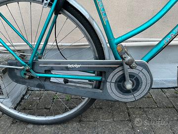 Vendo bicicletta da donna con ruote da 28 revisionata e pronta all’uso. Telaio abbastanza grande, è consigliata per persone alte almeno 1.70 m. Freni con pattini, cavi e guaine sono nuovi e appena montati. Dotata di cavalletto, campanello e lock per ruota posteriore con doppia chiave. Ritiro in zona Corso Belgio a Torino