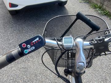 Vendo causa inutilizzo bella bicicletta a pedalata assistita Lombardo, ruote 26, con doppia batteria entrambe perfettamente funzionanti e poco utilizzate con chiave di sicurezza. Cambio a 6 rapporti e pulsantiera con tre potenze per supporto pedalata assistita. Cestino portaoggetti anteriore e borsa posteriore. Luci anteriori e posteriori. Ottima per muoversi in città senza restrizioni traffico e in maniera ecologica e salutare! Possibile visionare e provare. No spedizione. Prezzo poco trattabile