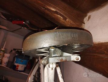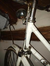 Vendo bici donna Bottecchia vintage, colore bianco con vernice ancora impeccabile, freni a bacchetta perfettamente funzionanti come la bici. Tutta originale al di fuori della sella chè, tanto per rimanere nel vintage è una Carnielli in pelle marrone marchiata dell'epoca. La bici è appesa ad una trave, basta una spolverata se si vuole usare, una bella lavatina per esporla in salotto. Il prezzo è di Euro 240 poco trattabili. Come dico anche negli altri annunci non spedisco, chiedo visione e prova, contatti solo WhatsApp o telefonici.