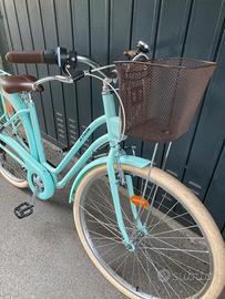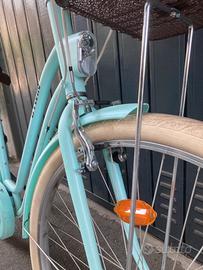 Tenuta in ottime condizioni. Conservata sempre in cantina e mai all aperto. Tutto funzionante incluso cambio e freni. Dotata di cestiono anteriore e portapacchi posteriore. Color turchese. Taglia S/M. Ruota 28”