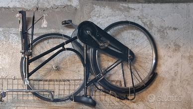 La prima foto mostra la bicicletta montata la seconda foto come è smontata ma con tutti i suoi pezzi. Da restaurare.