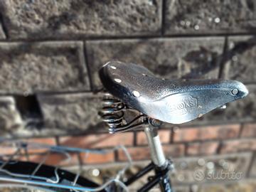 Accessoriata con: sella Brooks originale (molto ricercata), cavalletto laterale, portapacchi, cambio (nuovo) Shimano a 6 marce, campanello olandese (suona come un tram).
