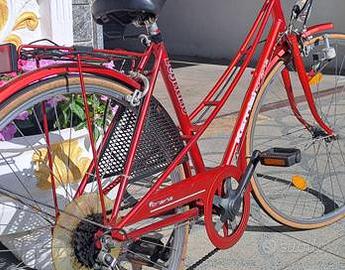Bicicletta donna Legnano mod. Kombi Krene, cerchi da 28", INTROVABILE, colore rosso metallizzato, cambio Shimano a 6 rapporti, usata pochissimo, senza graffi e senza ammaccature, con cavalletto e portapacchi. OCCASIONE € 205,00