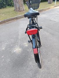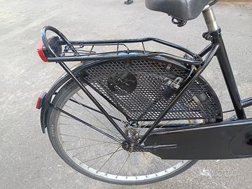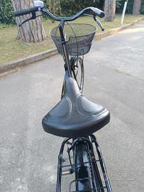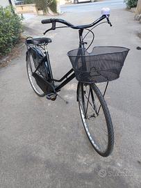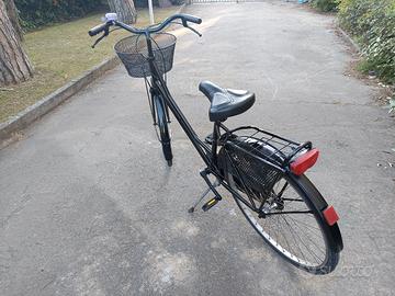 È una bicicletta per donna ma anche uomo,senza cambio pedalata leggera e morbida,con paracatena integrale in modo che la catena non esce, cestino anteriore portapacchi posteriore campanello cavalletto luci gomme ottime freni ok. non ha bisogno di niente Faccio provare.