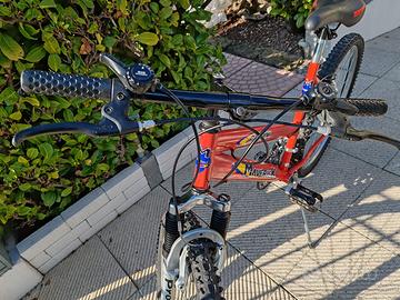 Corona Schimano Duo,Aerografia in colore rosso e giallo/blu ,pedali in acciaio,portaborraccia se richiesta.sella e freni nuovi.