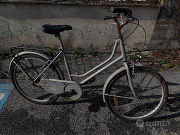 Bicicletta donna/ragazza ruota 24. Monomarcia, freni V-brake, cavalletto, porta pacchi anteriore e posteriore. Copertoni e camere d'aria a posto. Tutta funzionante, telaio integro ma evidenti segni di ruggine sulle parti secondarie. Vendo a 30 euro. Sono vicino la fermata metro Rebibbia. Contattatemi prima via SMS o WhatsApp, non rispondo a numeri sconosciuti 3383581529.