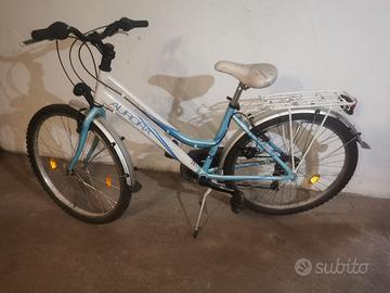 Vendo bicicletta donna/ragazza "Aurora",usata,perfettamente funzionante,telaio in alluminio,cerchi da 26 pollici,cambio Shimano 7x3,cavaletto,portapacchi 120 euro.