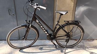 Vendesi bellissima bicicletta SCOTT SUB SPORT 40 LADY size M (2020) praticamente NUOVA. Sono stati percorsi meno di 10 km su ciclabile e poi è stata tenuta sempre in garage. Acquistata taglia sbagliata. E' compreso un MANUBRIO NUOVO, aggiuntivo all'orignale (NC-17 Manubrio da Trekking, 318 PRO, Ø 31,8 mm come si vede nella foto). Prezzo 430 eur con ritiro a mano zona Bologna. Freni V-Brake, gomme nuove. Perfetta. Adatta per altezze da cm 165 a cm 175/180 circa. SPECIFICHE: FRAME: Sub Sport 6061 Tig welding FORK: Suntour M3010 / 50mm travel / coil REAR DERAILLEUR: Shimano RD-TX800-SGS 7 Speed FRONT DERAILLEUR: Shimano FD-TY510 SHIFTERS: Shimano SL-RS35 CRANKSET: Shimano FC-TY301 C Black 48x38x28T BB-SET: VP-BC73C CHAIN: KMC Z51 CASSETTE: Shimano CS-HG200-7 12-28T Black BRAKE LEVERS: Promax BL 46G BRAKES: Promax TX123 HANDLEBAR: Syncros 3.0 680mm Rise: 12 mm, Backsweep: 15°, 31.8 H'STEM: Syncros UC3.0 adjustable SEATPOST: Syncros UC3.0 / 31.6mm SEAT: Selle Royal Essenza HEADSET: GW semi integrated HUB (FRONT): Shimano DH-C3000 Dynamo 32h HUB (REAR): Shimano FH-TY500 32h SPOKES: Pillar Steel 14G RIMS: Cross X14, 32h TIRES: Schwalbe Road Cruiser 700x47c LIGHTS: Front: AXA COMPACTLINE 20Lux Switch / Rear: AXA Blue Line steady RACK & FENDERS: Racktime Standit w/ spring clamp / Curana extruded wide fender / Ursus Mooi kickstand PEDALS: Syncros SP-827 WEIGHT: 17.35 Kg