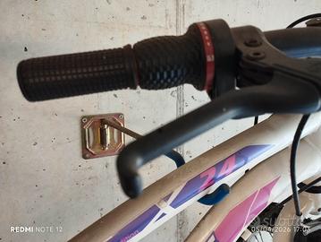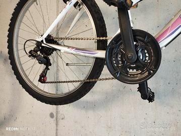 Bicicletta da donna / mtb di colore bianco con dettagli colorati sul telaio. - Telaio in metallo. - Manubrio con il cambio anteriore e posteriore 3/6 - Sella morbida - Ruote da 24