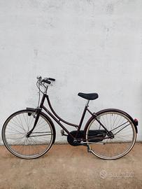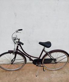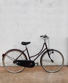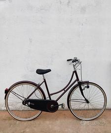 Elegante bicicletta da donna vintage in stile inglese, colore bordeaux metallizzato. La bici è in ottime condizioni estetiche e meccaniche, pronta per essere utilizzata subito senza bisogno di interventi. Modello: inglese a canna bassa (molto comoda per salire e scendere). Meccanica: monomarcia (single speed) con pedalata molto fluida. Stato: vernice bordeaux originale ben conservata, freni regolati e pneumatici con profilo para (chiaro) che ne esaltano lo stile retrò. Accessori: completa di parafanghi, carter copricatena integrale, cavalletto e campanello. Bici solida, leggera e perfetta per chi cerca un mezzo stiloso e affidabile per gli spostamenti urbani quotidiani. Vendo perché comprata ma mai utilizzata, spostandomi in auto. Prezzo leggermente trattabile. Ritiro a mano in zona Ferrara e provincia e provincia di Rovigo. Disponibile per visione e prova su strada.