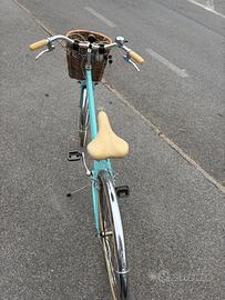 Vendo causa inutilizzo bicicletta donna vintage colore tiffany, completo di tutti accessori che vedete in foto (cestino vintage, luci anteriori e posteriori, campanello, cavalletto) Non spedisco, solo ritiro a mano Non rispondo a proposte ridicole