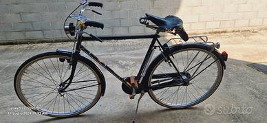 Bicicletta Bianchi Extra Lusso anni 50 freni a bacchetta misura 28, restaurata anni fa" , tenuta molto bene , nel mozzo ruota dietro cambio a tre rapporti. Farò anteriore con inserimento a baionetta si può mettere , togliere e funziona anche staccato come fosse una pila. La bicicletta è perfettamente funzionante e la potete utilizzare per bellissime passeggiate e/o raduni d'epoca. Eur 600 tratt. Venite a vederla e a provarla. Dopo avere visto nel negozio del ciclista del mio paese una Umberto Dei da donna , fatta oggi, modello anni 50 freni a bacchetta al prezzo di Eur 1600, ho rivisto all'insù il prezzo della mia Edoardo Bianchi essendo i materiali della stessa , tenuti molto bene e come qualità meglio di quelli di adesso. Pronto a valutare offerte ADEGUATE.