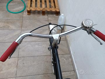 Bicicletta da Uomo Classica d'epoca 1955 "BIANCHI" – Colore Nero Vendo splendida bicicletta da uomo vintage, ideale per chi cerca un mezzo storico e ricco di fascino. Il telaio presenta la classica struttura elegante di colore nero, con le tipiche finiture delle bici d'epoca. Caratteristiche e Condizioni: Telaio: Da uomo, color nero opaco/satinato. Componenti d'Epoca: Cambio: Dotata di cambio campagnolo originale, funzionante, ideale per affrontare pendenze leggere. Dettagli Originali: Presenza del copricatena integrale nero, manopole in gomma rosse originali per un tocco di colore distintivo. Accessori: Campanello cromato classico, portapacchi posteriore robusto, e una pratica levetta di chiusura (probabilmente blocca-ruota/antifurto d'epoca) integrata. Impianto Luci: Include fanale anteriore cromato retrò e fanalino posteriore, collegati alla dinamo (funzionanti) Ruote: Cerchi cromati con pneumatici con fianco bicolore (nero/para), che accentuano l'estetica d'epoca. Copertoni e camere d'aria sostituiti , nuovi. (le foto parlano da se) Varie: Cavalletto laterale montato, sella confortevole. Stato d'Uso: La bicicletta si presenta in eccellenti condizioni conservative generali per la sua età, con normali segni di usura che le conferiscono carattere. È pronta all'uso per piacevoli pedalate urbane o brevi / lunghe escursioni. un pignone grande che diminuisce le pedalate facendo andare la bicicletta già ad una velocità di crociera. Una bicicletta elegante e molto flessibile e agile; che non passa inosservata. Contattami per ulteriori informazioni o per venire a vederla di persona.