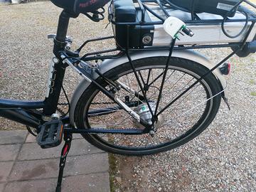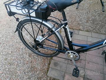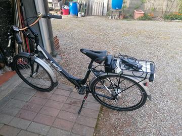 Bici elettrica Mi.Gi da 26 pollici a pedalata assistita Funzionante e tenuta bene Con 3 velocità Di autonomia fa 25km con la 3 velocità E 30km con prima-seconda velocità Indicatore carica batteria sul manubrio e anche sulla batteria stessa Carica batterie originale con indicatore di fine carica Molto fluida all'occorrenza va benissimo anche come bici da pedalare Marce Shimano Si trova a gualdo di voghiera (Ferrara) Disponibile a farla provare se interessati all'aquisto No perditempo, no offerte inutili Se vi serve la posso trasportare con 25 euro dopo averla vista e pagata. Vendo a 300 euro Non faccio consegne se non venite a vederla e dopo averla pagata.