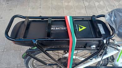 RUOTE: CERCHIO DOPPIA CAMERA ALTO PROFILO MILLENNIUM MADE IN ITALY – 26” X 1,75” TELAIO: ALLUMINIO IDROFORMATO FORCELLA: ZOOM ATTACCO MANUBRIO: ZOOM ALLUMINIO REGOLABILE SELLA: BASSANO TUBO SELLA: ALLUMINIO CORONA DENTATA: ALLUMINIO PEDALI: STANDARD FRENI: MECCANICI DISCO 160 MM CAMBIO: SHIMANO REVOSHIFT 7 VELOCITÀ SL-RS 35 7R CASSETTA: SHIMANO 7 VELOCITÀ 14-28 T DISPLAY: INDICATORE DI CARICA CON COMPUTER VARIAZIONE 5 VELOCITÀ E FUNZIONE EASY WALK 0-6 KM/H LUCE ANT. E POST. A LED MOTORE: BAFANG BRUSHLESS 250W AL MOZZO POSTERIORE VELOCITÀ MASSIMA: 25 KM/H BATTERIA: LI-ION 36V-12,8AH 461WH – ESTRAIBILE PESO BATTERIA: 3,5 KG TEMPI DI RICARICA: 5-6 ORE CARICA MINIMA: 30-40 GIORNI AUTONOMIA: 70 KM CIRCA IN FUNZIONE DEL CARICO E DELLE CONDIZIONI DELLA STRADA PESO: 24 KG BATTERIA INCLUSA PORTATA MASSIMA: 100 KG PORTATA PORTAPACCHI POST: 25 KG CESTINO: NON INCLUSO COLORI DISPONIBILI: NERO-TITANIO e NERO-ARGENTO