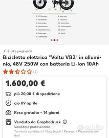 Vendo bicicletta elettrica usata ma in ottime condizioni nera siderale una batteria doppia chiave pieghevole Pagata 1,600 la vendo a 900 trattabile ruote nuove per la descrizione modello vedere le foto