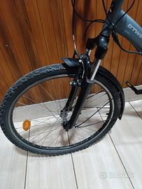 -Forcella:alluminio 6061, steli da 1”, sistema ammortizzante a elastomeri e molla, escursione 60 mm, non regolabile, cannotto in acciaio filettato da 1.1/8”