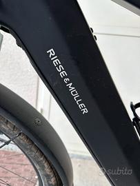 Vendo stupenda bici Multicharger2 Riese&muller elettrica, bici costruita in Germania: telaio in alluminio, motore Bosh CX ,batteria 750 Wh, cockpit integrato Kiox con navigatore, 530km totali, freni disco idraulici, cambio Shimano Deore XT 11 velocità, forcella anteriore ammortizzata. Ottima per gite fuori porta, uso cittadino, trasporto bambini, omologata fino a 170kg di carico totale. Borse omaggio, ripristino sella originale con reggi sella ammortizzato praticamente mai usato.
