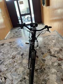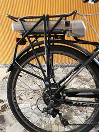 Vendo bicicletta elettrica a pedalata assistita Atala E-Run, modello ideale per la città e per il tragitto casa-lavoro. La bici ha un telaio in alluminio con scavalco basso, molto comoda e facile da guidare per chiunque. Caratteristiche principali: • Motore: Nel mozzo posteriore (250W), scattante e silenzioso. • Batteria: 36V, situata sotto il porta pacchi. • Display: LED sul manubrio con diversi livelli di assistenza alla pedalata. • Cambio: Shimano Tourney a 6/7 velocità con comando al manubrio. • Ruote: Cerchi in alluminio con coperture in buono stato. • Accessori inclusi: Caricabatterie originale, cavalletto, luci anteriori e posteriori, parafanghi e carter copricatena.