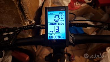 Come da titolo bicicletta elettrica con acceleratore e pedalata assistita pari al nuovo con solo 53 km percorsi con in più una ruota da 750w e altra coppia di freni e pastiglie.