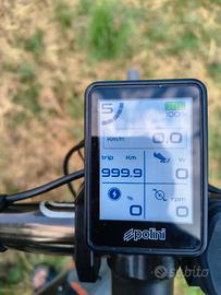 Telaio in alluminio taglia 54 motore centrale POLINI , batteria 500W ciclo computer Polini montato come optional gruppo SRAM APEX mono corona SRAM EAGLE 38T pignone 11 velocità (10 12 14 16 18 21 24 28 32 36 42) freni a disco diam. 160