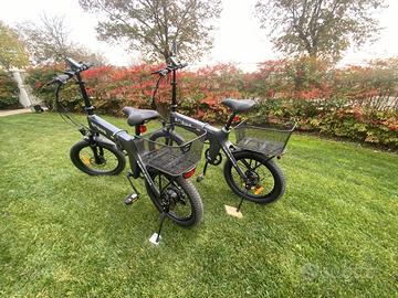 Due biciclette elettriche pieghevoli Engwe C20 Pro (acquisto anno 2023), con aggiunta di cestini portaoggetti posteriore, parafanghi e luci a batteria posteriore rosso.