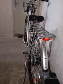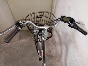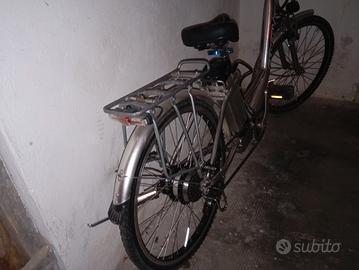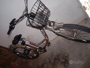 bicicletta elettrica Esperia taglia 26 ammortizzata in ottime condizioni perfetta in ogni sua parte completa di caricabatterie, luci, avvisatore acustico e cavalletto, portapacchi e cestino. la batteria è da sostituire perché non tiene più la carica vendo per cambio modello prezzo richiesto 200 euro non trattabile la batteria si trova su AliExpress a circa 100 euro.