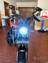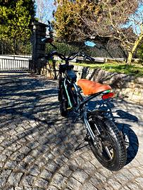 Bicicletta a pedalata assistita, fat bike, circa 350 km, quindi pari al nuovo, chiavi per l'accensione e per il blocco della batteria, motore 750 kw ma limitato a 250, quindi perfettamente a norma, 5 velocità da computer di bordo e 7 rapporti con il cambio Shimano, 2 freni a disco (entrambi sono stati potenziati per maggiore sicurezza), batteria estraibili in modo da poterla caricare anche a casa, full led con faro anteriore, posteriore, stop, frecce anteriori e posteriori a led, clacson elettronico, ammortizzata sia nell'anteriore che nel posteriore, computer di bordo per selezionare le modalità e verificare lo stato di batteria (che ha un'autonomia di 60/70 km in base a come e dove la si utilizza), chilometraggio etc! Ho aggiunto specchi retrovisori, varie protezioni per cavi, parti delicate, parti soggette a usura e sfregamento, portacellulare impermeabile, pedali in alluminio, portaoggetti stile Harley Davidson! La bici è limitata come prevede il codice della strada a 25km/h, nel caso in cui si utilizzi in area private può essere semplicemente sbloccata scollegando un cavo nel sottosella, raggiungerà così facilmente i 50km/h, e potrà essere utilizzata con acceleratore, quindi anche senza pedalare! Includo inoltre un lucchetto a combinazione a 5 cifre nuovo, 2 frecce a led aggiuntive per il posteriore, 2 pedaline per far appoggiare i piedi al secondo passeggero!