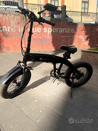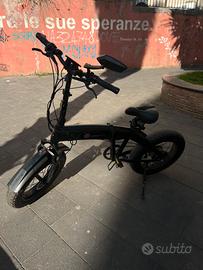 Telaio: lega di alluminio 6061 Forcella: sospensione idraulica in alluminio Motore: 48V 750W Batteria: litio 48V 14AH Samsung Cambio: Shimano a 7 velocità Display: LCD a colori Sistema frenante: freno a disco idraulico Pneumatici: misura 4.0” x 20 Velocità: 40-45 Km/h Autonomia solo elettrica: 40-60 Km Autonomia assistita: 65-75 Km Carico massimo: 200Kg Pieghevole, portatile, potente, confortevole e pronta a tutto, con questa Fat ebike potrai affrontare ogni percorso con facilità. Questa bicicletta elettrica si adatta al bagagliaio della tua auto o potrai facilmente caricarla nel tuo camper, in modo da poterla portare ovunque con te. Dotata di larghi pneumatici da 4" e una forcella ammortizzata, questa FAT ebike è pronta sia ad affrontare l’asfalto che a conquistare sentieri in mezzo alla natura! Con il suo potente motore e la batteria integrata non sarai mai a corto di potenza e, con 5 livelli di assistenza alla pedalata o un comodo acceleratore con cui non avrai bisogno di bisogno di pedalare, potrai andare dove vuoi!