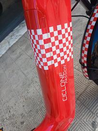 Garelli Ciclone edition ha telaio pieghevole con snodo nel punto più basso del tubo obliquo. Ruote con diametro ridotto e pneumatici 20″x4″, per un peso di 21 kg.