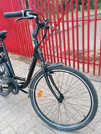 Bicicletta elettrica a pedalata assistita, telaio in acciaio, motore posteriore brushless 250 Watt, batteria 36 v - 7,8 Ah - 280 Wh, ruote 26" x 1,75", cambio a 6 rapporti, freni V-Brake, display LED, 3 livelli di assistenza, soft start a 6 km/h, luce LED anteriore e posteriore, parafanghi in acciaio, cavi elettrici a sgancio rapido, portapacchi posteriore, cavalletto.