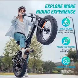 Pneumatici Fat e Sospensioni: I pneumatici larghi da 20 pollici sono adatti a vari terreni, e le sospensioni (anteriore e talvolta posteriore) garantiscono una guida confortevole.
