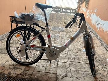 Propongo in vendita una bicicletta elettrica modello "E-RUN Atala 6.1" assolutamente nuova e mai utilizzata. Come si può osservare chiaramente dalle fotografie, la bicicletta è ancora dotata delle pellicole protettive originali, a conferma delle condizioni impeccabili in cui si trova. La batteria è nuova, mai caricata, e l’intero sistema elettrico è intatto e pronto all’uso.