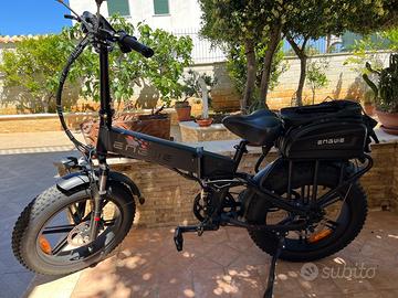 Bicicletta Elettrica ENGWE ENGINE PRO. Ottime condizioni usata pochissimo 4/5 volte per sopraggiunta impossibilità fisica dopo solo 2 mesi dall'acquisto, computer di bordo digitale a colori, doppia sella di cui una in memory ergonomica, borsa trasformabile in bisacce per maggior capienza originale ENGWE , Specchietti retrovisori. 249 Km, cambio Shimano originale a 8 cambi.Pieghevole. Luci anteriori e posteriori con stop. Freni a disco. Integra in ogni sua parte nessun segno di usura, mai incidentata. Completa di caricatore originale, Batteria agli ioni di litio in perfette condizioni. Motore 750 W ricarica autori generativa. Borsetta chiavi montaggio e smontaggio. Tenuta sempre in casa. Visibile in zona Villagrazia di Carini (PA). Consegna a mano. Prezzo 1.200,00 completa di tutti gli accessori e con caschetto nuovo mai usato omologato.