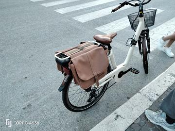 bicicletta elettrica pedalata assistita con borse e batteria da 46 ampere e anche caricabatterie
