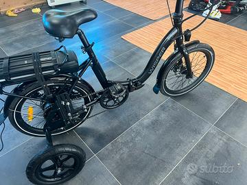 Vendo la bicicletta elettrica di mia figlia disabile. È una bicicletta elettrica appositamente adattata con ruote aggiuntive per l'equilibrio. L'acceleratore manuale permette di utilizzare la pedalata assistita senza dover pedalare. Ideale per persone con problemi di mobilità o di equilibrio. Le ruote stabilizzatrici possono essere rimosse e la bicicletta può essere utilizzata normalmente, se necessario. È anche pieghevole, quindi il trasporto in auto è facile. La bicicletta è come nuova ed è stata usata solo poche volte. Costava da nuova €3250. La batteria è perfetta. Chiavi e caricabatterie inclusi.