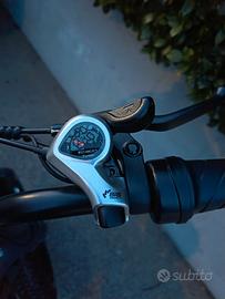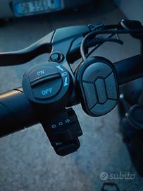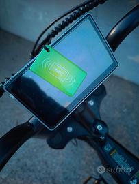 vendo bicicletta elettrica V8 pari al nuovo,velocità media 25km/h, sboccato 50km/h, doppi ammortizzatori,ruote 20X40,freno doppio a disco,luce per illuminazione a led,freccie direzioni davanti all'interno del faro,accensione bici con scheda NFC (2 schede,due chiavi per batteria🔋 e 2 pulsantiera per allarme