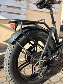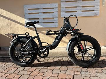 Vendo bicicletta elettrica pieghevole Tucano mod. Low-e 500W di colore nero opaco. Motore Bafang 9 velocità. La batteria di grande capacitá é di 10 Ah a 48V. Cerchi in lega con copertone 20 x 4.0 Cambio Shimano Acera 6 velocitá. Freni a disco. Sellino ammortizzato e con display a colori. Pezzi di ricambio facilmente reperibili nello store ufficiale della casa. Ho anche l’acceleratore a mano ma non l’ho montato.