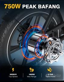 motore Bafang 250 watt nominali (picco 750 watt) conforme alla legge italiana