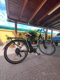 Bicicletta elettrica come nuova marca MOMA modello Olandese da 28.2, freni a disco anteriore e posteriore, batteria al litio, piccolo schermo LCD, cambio Shimano, sella e manubrio regolabili in altezza , campanello, cavalletto, forcella anteriore con sospensione idraulica