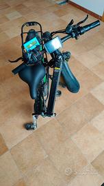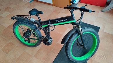 Motore brushless da 1000 W, batteria agli ioni di litio da 48 V * 12,8 Ah. La Fat E-bike Shengmilo, vanta inoltre la funzione di shock absorption: ovvero una funzione di assorbimento degli urti completa. Ciò, abbinato alle robuste ruote da 26 pollici, la rendono il mezzo ideale per gite fuori città, dove è possibile avventurarsi sui terreni più sconnessi. Dotata di sistema di illuminazione completo, Shengmilo 1000 W consente di muoversi e divertirsi sempre in totale sicurezza, anche in condizioni di scarsa luminosità.Caratteristiche tecniche bicicletta elettrica Shengmilo 1000w Fat Mountain BikeBatteria: batteria 48V 10Ah, Motore: brushless da 1000w, Schermo: LCD con aggiunta di una centralina Arduino fai da te per la misurazione della corrente, potenza istantanea e tensione batteria. Telaio: telaio pieghevole in lega di alluminio SHENGMILOForcella anteriore: ammortizzatore anteriore a mollaCerchio: cerchio in lega di alluminio da 26 polliciPneumatico: pneumatico grasso 26 * 4.0 Deragliatore: Shimano 21 velocitàFreno a disco: freno a disco idraulico XODCatena: KMC 9SPeso massimo consentito: 150 kg. Specifico che la batteria non ha più l'autonomia originale in quanto ha perso capacità. la centralina originale é stata rimossa e montata una più performante e robusta esternamente.