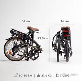 BTWIN E FOLD 500 BICICLETTA ELETTRICA PIEGHEVOLE. NUOVISSIMA. Usata solo per 10 Km, non vi é più la disponibilità di fare reso. RIPETO, E’ nuova, no affaristi, no perditempo, le condizioni sono impeccabili possibilità di visionare scontrino utilizzata 3 volte dall’auto al lavoro per un totale di 10 km. Bicicletta con un suo fascino estetico ed elegante oltre che molto leggera, possibilità di trasportare piccoli oggetti tramite porta pacchi posteriore. Presente inoltre, luce a led anteriore e fanale posteriore per una maggiore sicurezza su strade buie. Dimentica le fat bike ingombranti: questa è più leggera (21,4 kg totali), più agile, pieghevole in pochi secondi, entra nel bagagliaio e la porti ovunque: metro, treni, autobus. Parametri dichiarati: • Motore posteriore 250 W – spinta fluida e costante • Coppia 35 Nm – affronta salite urbane senza sforzo •Batteria 36 V / 7 Ah (252 Wh) – autonomia fino a 50 km • Ruote 20” – maneggevole e scattante •Cambio Shimano Tourney 6 marce – precisione e comfort Pronta all’uso, super pratica per pendolari e città, veloce da aprire e richiudere, facilmente riponibile nel bagagliaio di un auto poichè leggera a differenza di una fat bike, e non c’é bisogno di smontarla. Condizioni impeccabili, disponibile per prova, ripeto, possibilità di visionare scontrino, la bicicletta è nuova (prezzo del negozio 1.100,00 euro)