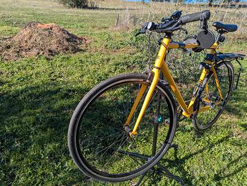 Elops Urban 500 Speed, bicicletta da città di Decathlon senza marce (con possibilità di montare pignone fisso), leggera, piccola e compatta. Misura XL, usata per 100 km, come nuova. Compreso nel prezzo porta pacchi, porta cellulare e porta borraccia.