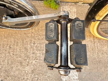 Il prezzo non è ovviamente 12€! Ganna modello Superlusso del 1937, con freno interno anteriore e esterno posteriore. Ogni accessorio e componente è marchiato Ganna ed assolutamente originale: sella Aquila marcata Ganna Borsellino sottosella in cuoio marchiato Ganna con attrezzi e oliatore Ganna Pompetta marchiata Ganna Bronzino originale smaltato Ganna Manopole in osso incise Ganna Pedali a centro intero marchiati Ganna con gommini originali Carter modello Super/Impero con bellissima decal conservata Copertoni Pirelli Stella bianchi Gemma a melograno Mozzi con ingrassatori Patacchino del manubrio smaltato Pattini freno originali Bicicletta che ha ottenuto la certificazione di “mezzo di rilevanza storica” dal Registro Storico ufficiale. Inoltre è comparsa nella rivista nazionale Biciclette d’epoca (6 pagine) È scorrevolissima e pronta all’uso. Vendo a malincuore esclusivamente per problemi di spazio. Tag: Umberto dei bianchi taurus corsa ganna legnano vintage restauro universal simplex cam selvino Imperiale marca oro anni 10 20 30 40 50 60 maino Atala frejus stucchi amerio monterosa Pirelli bosch super a2 a3 alluminio campagnolo telaio carter movimento centrale radius Radsonne ambrosio epoca zaffiro topazio extra touring tebro impero superleggera siamt lautal brooks lepper touring Italia cuoio anni 20 amerio scettro sabauda cicli icaro magneti marelli Claudio frenata integrale leve rovesce gloria garibaldina beltramo vecchietti 40/32 Benotto bottecchia graziella pieghevole muso di cane leve learco guerra coppi bartali colnago sport