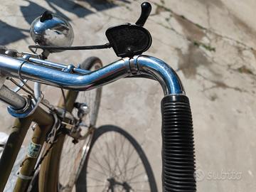 Vendo bici d'epoca inglese particolare. vintage Marca Raleigh modello Sport. La bicicletta è funzionante, vanno cambiate le camere d'aria e i copertoni. I freni a bilancino (a bacchetta) funzionano, vanno cambiati i gommini. La vernice è originale, colore verde metallizzato (NON È TUTTA RUGGINE COME SEMBRA IN FOTO) Dinamo funzionante, la lampada anteriore ha due lampadine (una per il coprifuoco dato che è dei tempi della guerra) e una normale. La cosa particolare e rara è il cambio posteriore a tre velocità, comandato da una leva anteriore al manubrio. Il cambio è di marca Sturmey Archer. Data l'età, naturalmente la bici presenta ruggine ( ma non rotture) e i cerchi stanno perdendo la cromatura. Niente di grave insomma. NON SPEDISCO