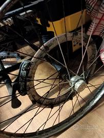 Salve propongo bicicletta per invalidi o con disabilità,a tre ruote dell'epoca. trattasi di una vecchia bici anni 40/50 creata da Umberto Dei per le persone con problemi alle gambe, molto comoda e leggera nella guida, perfettamente funzionante, conservata e ritoccata nei anni . sedile con imbottitura e pelle ancora originale, la seduta purtroppo non più, in quanto nasceva come comoda e ora adattato una seduta normale , sempre in pelle e in tinta. punti di forza del triciclo : gomme posteriori nuove. gomma anteriore dell'epoca camera d'aria tutte 3 nuove. catena rigenerata. vernice bella. telaio robusto e sano senza crepe o botte. cerchi originali dell'epoca con ingrassatori sui mozzi. freno originale parafango anteriore originale punti deboli: manca il faro anteriore,ma di facile ritrovamento. dinamo da montare. cerchi da ripulire. manubrio risaldato nei anni. ma attualmente bello robusto . hanno fatto un ottimo lavoro all'epoca. descrivo tutto per evitare perditempo o appassionati della domenica, è un pezzo molto particolare e raro, do serietà e ne esigo . possibilità di ritiro zona Godega Cordignano Sacile Gaiarine Codognè Orsago Conegliano. Non faccio spedizione. Possibilità di piccolo trasporto previo accordi in zona. Valuto offerte o proposte.